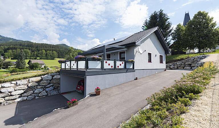 Bedingt durch die Erkrankungen der Eltern stand für Familie Töscher beim Hausbau ein barrierefreier Bungalow im Fokus. Nach erstem Durchschauen von Katalogen verschiedenster Hausanbieter und einem Besuch im Musterhauspark Graz stießen die Bauherren auf die 120-Jahr-Jubiläums-Hausangebote von HARTL HAUS. „Von der Raumaufteilung und Optik gefiel uns der Bungalow Trend 112 W“, erzählen die Bauherren. Da die Gemeinde aber kein Walmdach zuließ, wurde das Haus mit Satteldach geplant. „Gut fanden wir, dass wir die Aufteilung der Räume, die Fensterhöhen und Größen selbst bestimmen konnten.“, so Hr. Töscher.