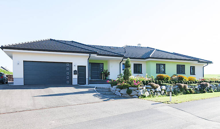 Die Bauherren hatten sich den Bauvorgang schon bei anderen HARTL Haus Besitzern angesehen und wussten dadurch genau, was auf sie zukommt. Außerdem war es der Familie wichtig, dass es ein Unternehmen aus der Region ist. Im Musterhauspark in der Blauen Lagune haben sie dann ihr Wunschhaus gefunden. „Für mich war es immer schon wichtig, einen Bungalow zu bauen, schon alleine deshalb, weil es eine Vorsorge für das Alter ist und man später nicht mehr an Barrierefreiheit denken muss“, erklärt Robert Meixner.